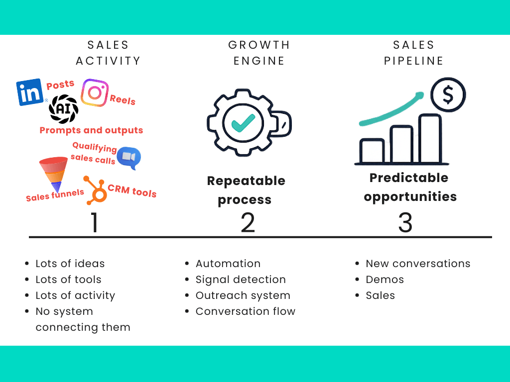 Most founders have great ideas for generating new business. But without the right system, those ideas never turn into actual sales.